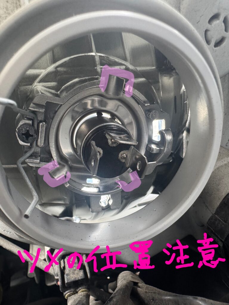 ハロゲンバルブをヘッドライト側の溝に合わせて嵌め込み、ロックをする。